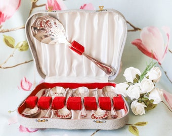 Beautiful Art Deco boxed set of Debesco dessert spoons and server: ideal for summer strawberries ahead